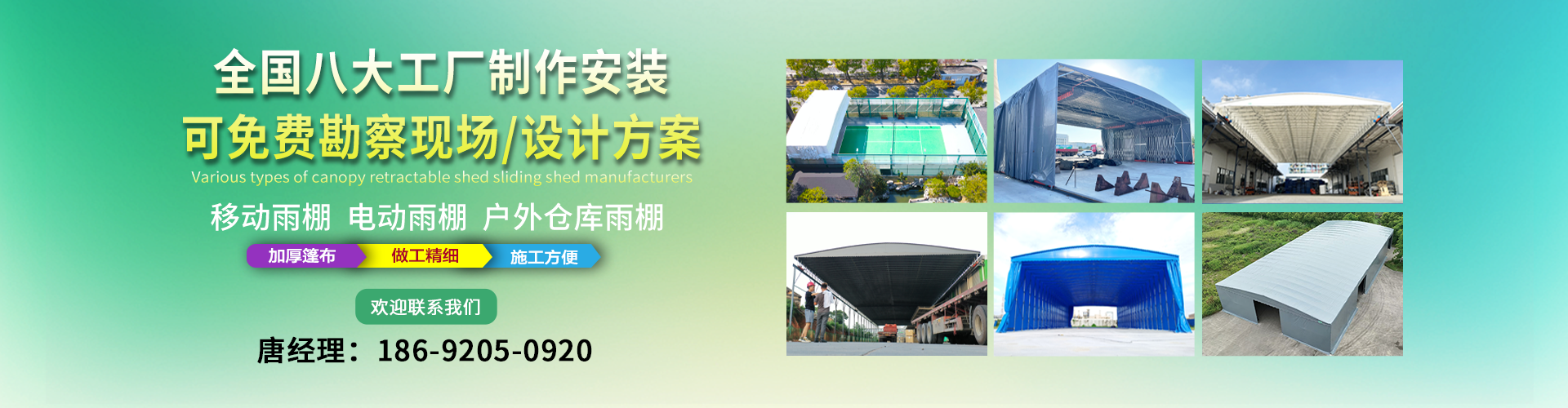 湖南鑫建華鋼結(jié)構(gòu)工程有限公司是一家電動雨棚、膜結(jié)構(gòu)車棚研發(fā),生產(chǎn)銷售,施工安裝于一體的專業(yè)鋼結(jié)構(gòu)科技公司,主要產(chǎn)品有伸縮雨棚,電動雨棚,膜結(jié)構(gòu)車棚等。 湖南地區(qū)職員目前有200多人,自建廠房15600平方米,配備先進(jìn)的生產(chǎn)流水線,使每件品質(zhì)產(chǎn)品的堅實基礎(chǔ)。 公司在衡陽,蘇州,天津,濟(jì)南,鄭州,江門,佛山,武漢,重慶均設(shè)有服務(wù)工廠,擁有專業(yè)的技術(shù)團(tuán)隊,配備先進(jìn)的設(shè)備和流水線生產(chǎn),產(chǎn)能高,貨源充足,發(fā)貨速度快,服務(wù)區(qū)域廣。 移動伸縮棚適用于通道臨時倉儲、戶外運(yùn)動遮陽、污水池遮蓋、能源交通、熱力化工、礦山、船舶制造及市政建設(shè)、物流、碼頭等領(lǐng)域的構(gòu)件制作加工,成品半成品存放、倉庫、野外儀器設(shè)備操作用房等。尤其是對工廠發(fā)貨、倉儲臨時遮雨防嗮,梅雨期較長、建設(shè)周期較短的工程施工等特別適用。還可根據(jù)用戶需求量身定制、適合企業(yè)所需不同款式的產(chǎn)品。 我公司堅持“誠信社會為本,客戶滿意為榮”的經(jīng)營理念,做到質(zhì)量把控,嚴(yán)格管理,精益求精,恪守承諾。使鑫建華逐步走向成熟,其系統(tǒng)化、專業(yè)化日趨完善。以專業(yè)的技術(shù)、科學(xué)的管理,更高的產(chǎn)品質(zhì)量,優(yōu)良的企業(yè)信譽(yù),真誠的客戶服務(wù),靈活多樣的經(jīng)營方式和務(wù)實創(chuàng)新的企業(yè)精神愿與社會各界攜手合作,為推動智能鋼結(jié)構(gòu)建筑事業(yè)的發(fā)展而不斷努力。...